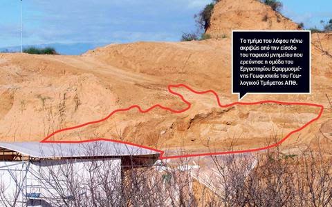 カスタの丘に来る冬のプレッシャーの下で、外でオルガスムがあります, 「EthnostisKyriakis」によって記録されたように. 土壌は大型トラックと掘削機の助けを借りて輸送されます, 近くの全長の大きな周囲の壁の暴露後に形成された堀にいる間 500 対策, これは前の年に明らかにされました, 記念碑全体を保護するために、大規模な排水プロジェクトが実施されています.